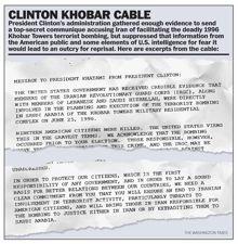 Chief among the new evidence is a top-secret cable from summer 1999 showing that Mr. Clinton told Iran’s president at the time, Mohammad Khatami, that the U.S. believed Iran had participated in the Khobar Towers truck bombing.