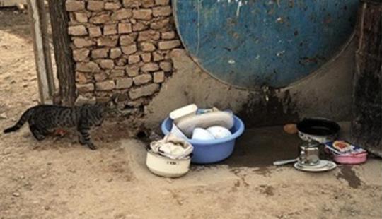 This is just one family of millions in Iran living under the poverty line. This is their ‘home’, a mixture of thatch, broken bricks and wood piled up to just build a simple shelter. When you go in through the door, you see the mother sweeping the house and the daughter, ashamed of being seen by a stranger, flees into the house.