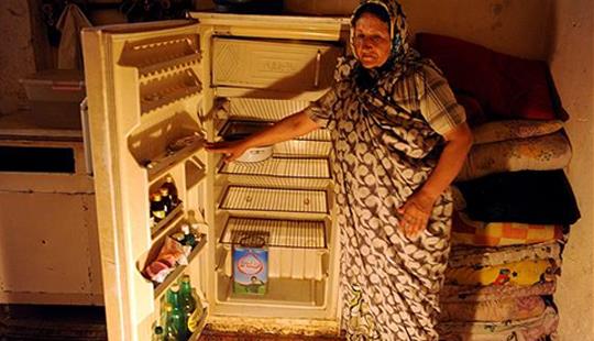She opens the refrigerator and says, “I swear to God when my child goes out to play and comes back, I feel so ashamed because I know he is hunger. I just wish I could say Saeed, go and get something to eat from the fridge… but I can’t”.