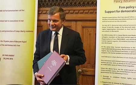 The Rt. Hon. David Jones MP presented an initiative supported by nearly 400 members of all major parties in both Houses of Parliament. The initiative urges the UK government to adopt a firm policy towards Tehran. It laid out the following recommendations as the base of such policy: