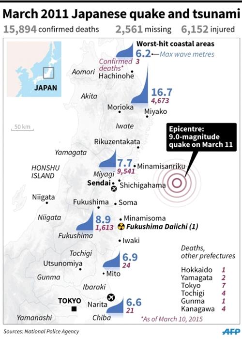 AFP – 11 March 2016 – Japan paused on Friday to mark five years since an offshore earthquake spawned a monster tsunami that left about 18,500 people dead or missing along its northeastern coast and sparked the worst nuclear disaster in a quarter century.