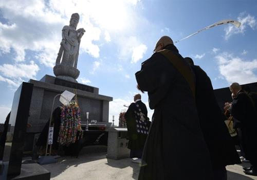 In the northern city of Sendai in Miyagi prefecture — the region that suffered the most deaths — survivors and bereaved family members gathered at a Buddhist statue built for the repose of victims’ souls in front of a huge breakwater at Arahama beach where massive waves came ashore five years ago.