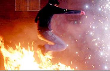 At 1745 Kermanshah time Andisheh Township was another place for the youth to hold their celebrations. They used colorful fireworks to enjoy their traditional party.