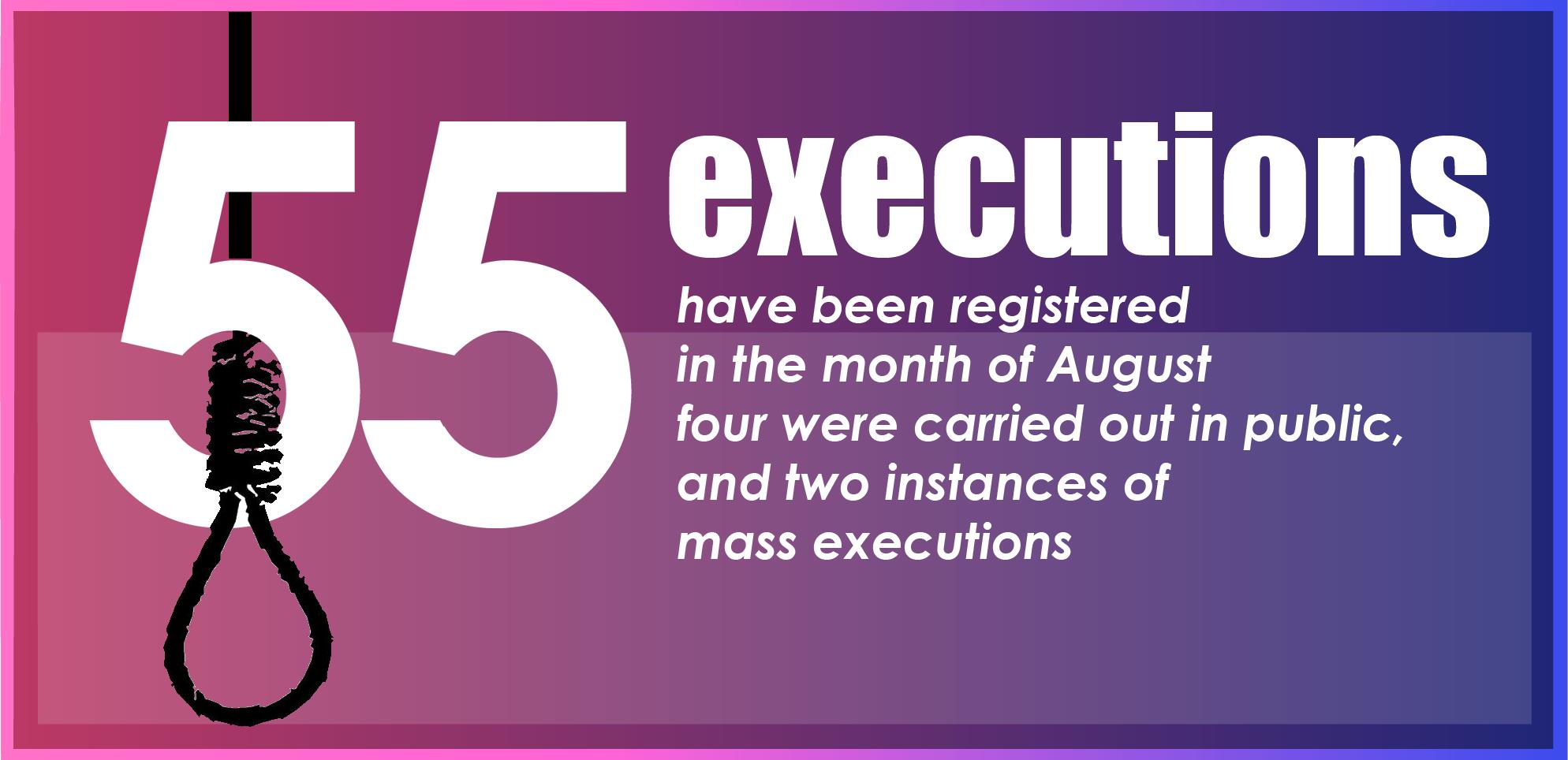 The executions recorded by Iran Human Rights Monitor has reached at least 55 in the month of August.