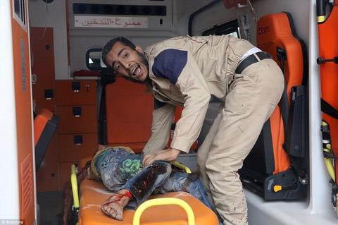 A wounded boy lies in an ambulance after Assad’s forces attacked the Ansari neighborhood of Aleppo in July