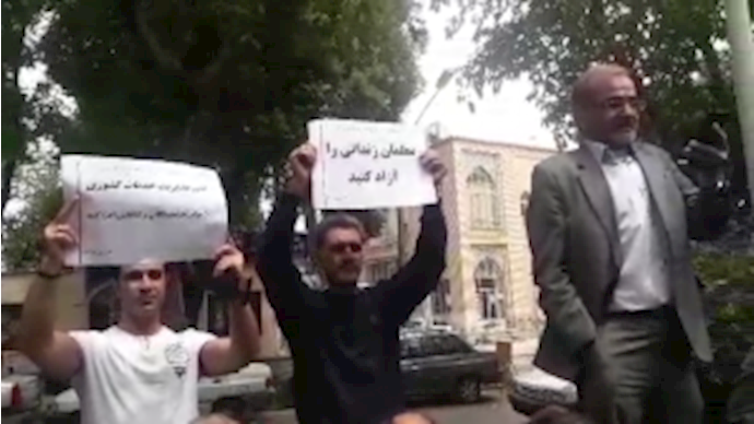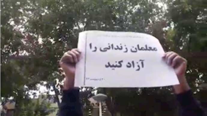 In Kazerun, southern , teachers and academicians rally chanting "Free the detained teacher."