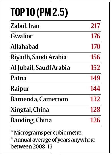 May 13, 2016 – According to a new WHO report, New Delhi was the 11th most-polluted city while Gwalior (2), Allahabad (3), Patna (6) and Raipur (7) figured in the top seven.