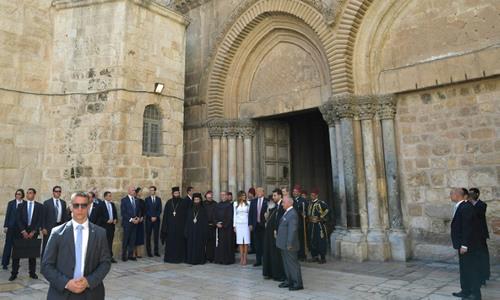 US President Donald Trump (C) and First Lady Melania Trump visit the Church of the Holy Sepulchre in Jerusalem’s Old City on May 22, 2017