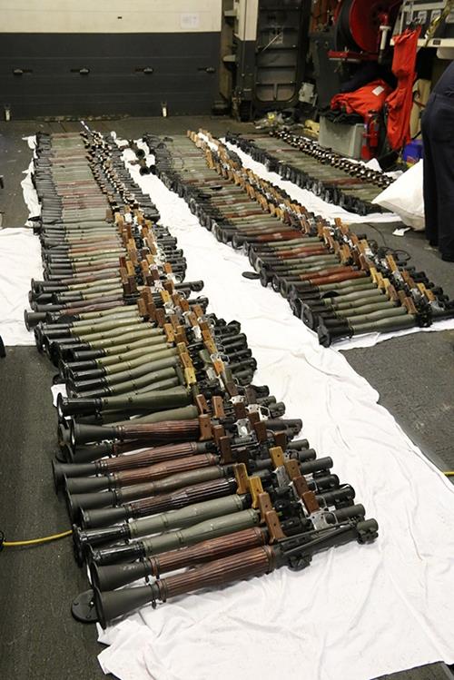 The Navy disclosed Monday that it recently confiscated a weapons cache from a small fishing craft in the Arabian Sea, seizing about 1,500 Kalashnikov rifles, 200 rocket-propelled grenade launchers and 21 .50-caliber machine guns. It marks the fourth seizure by a U.S.-led maritime task force in the region since September — and underscores the difficulties the United States faces in stopping weapons smuggling to nations like Yemen, where Houthi rebels continue to rely on Iranian arms.