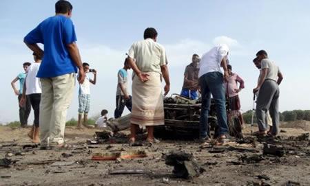 People gather at the site of a car bomb attack in Yemen’s southern port city of Aden January 5, 2016.