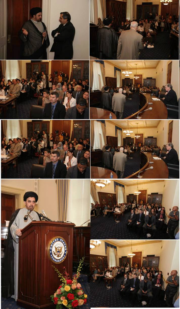 In this session, simultaneously held with the US Senate hearing session to receive reports of the MNFI commander and the US ambassador to Iraq, more than a hundred Congressmen, Senators, US Congress experts and also Ayad Jamaluddin, Iraqi Shiite clergy and parliament member, on behalf of the Iraqi National List fraction headed by Dr. Ayad Allawi participated.