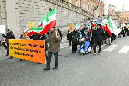 Supporters of the People’s Mojahedin Organization of Iran (PMOI or MEK) marched in center of Stockholm on Saturday calling for the regime’s human rights dossier to be referred to the United Nations Security Council for punitive measures.