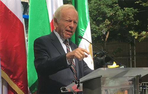 Speakers at the rally included former Connecticut Senator Joe Lieberman, the British Barrister and President of the UN Court for War Crimes in Sierra Leone Sir Geoffrey Robertson, QC, who compiled a report on the 1988 massacre and Pastor Saeed Abedini, until recently imprisoned in Iran for his Christian faith.