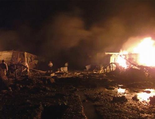 The aftermath of the rocket attack at Camp Hurriya near the Iraqi capital Baghdad on 29 October 2015