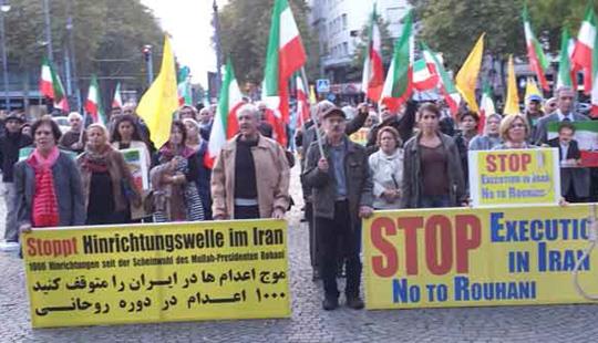 On the occasion of the World Day Against Death Penalty, a large group of Iranians in Germany gathered on Saturday in the center of city of Cologne to protest the increasing number of executions in their country.