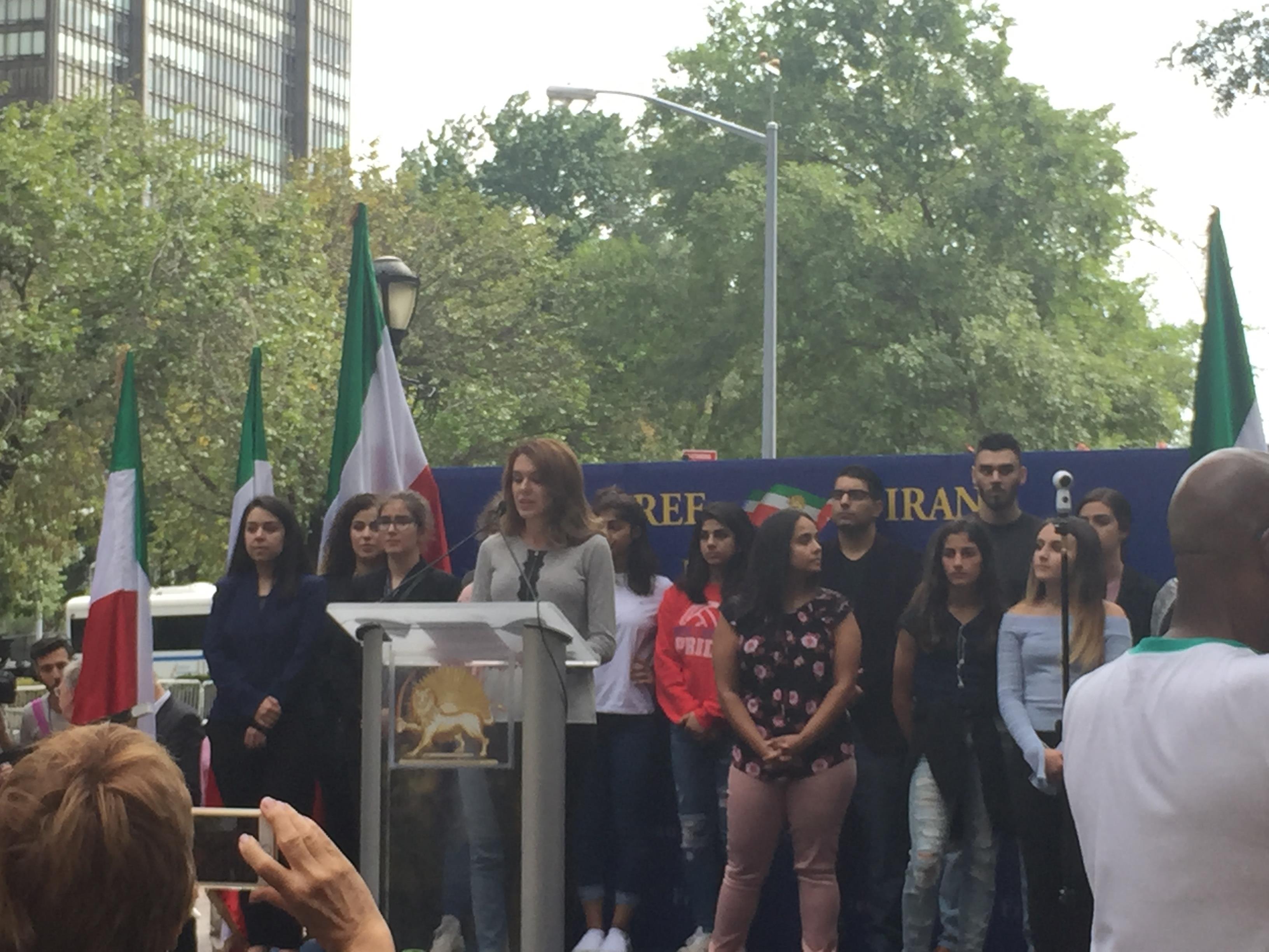 Mahtab Amin, representing the Iranian youth, members of Organization of Iranian American Communities (OIAC), told the large rally, “many of us were ourselves born following the 1979 revolution and due to the political persecution imposed on our families, have not yet had the chance to see the cities and towns where our parents grew up…One day soon, we shall rejoice and celebrate the renewal of human rights, freedom, and democracy together in Iran.”