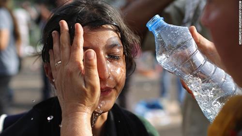 Hungarian police drove them back with tear gas, pepper spray and water cannons.
