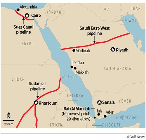 It is estimated that nearly 7 per cent of oil shipments from the Gulf region pass through the strait heading towards the northern Mediterranean through the Suez Canal.