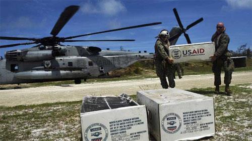 American military helicopters were unloading boxes of supplies from the United States Agency for International Development to be stored by the UN in Jeremie before being taken to other parts of the south.