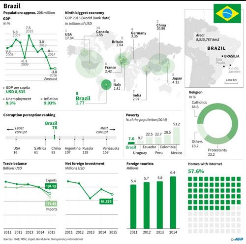 Huge anti-Rousseff street demonstrations over the past year reflected nationwide anger at Rousseff’s management of a country mired in double-digit unemployment and inflation.