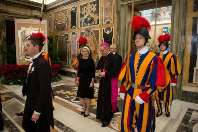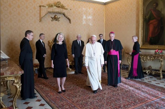 Pope Francis meets U.S. ambassador to the Vatican Callista Gingrich at the Vatican December 22, 2017.