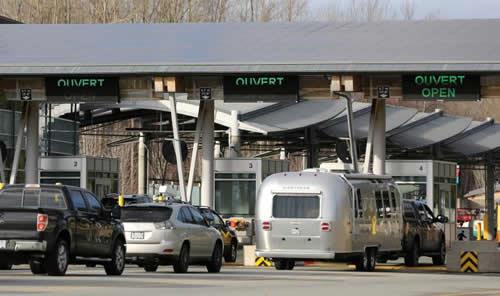 FILE PHOTO, Cars enter lanes for Canada customs and border inspection after arriving from the United States to Surrey, British Columbia, Canada on February 16, 2017.