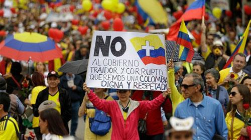 Colombians march to protest against President Juan Manuel Santos’ government and peace talks with the Revolutionary Armed Forces of Colombia