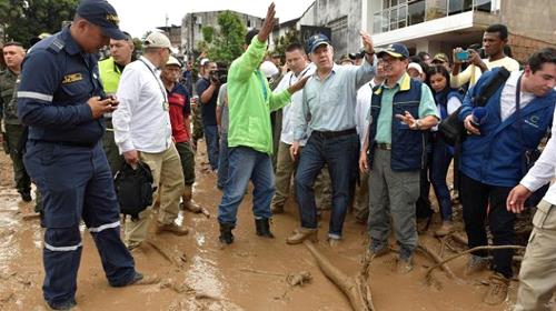Colombian President Juan Manuel Santos flew to Mocoa, population 345,000, to oversee rescue efforts on the city outskirts and speak with affected families.