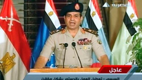 Then Egyptian army chief Gen. Abdel Fattah al-Sisi announced the overthrow of former President Mohammad Mursi on July 3