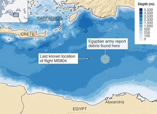 The Egyptian military said it had found parts of the aircraft and passenger belongings about 290 kilometers (180 miles) north of the coastal city of Alexandria, Egypt.