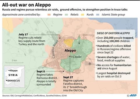 Russian and Syrian bombardment had been providing air cover for a government offensive that started on September 22 aimed at seizing the city’s east, held by rebels since 2012.