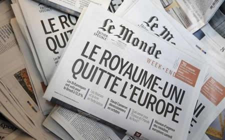 The front page of daily newspaper Le Monde, with the headline, ‘United Kingdom Leaves Europe’, June 24, 2016.