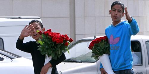 Two Syrian brothers Bashar, 12, and Rasem, 14, who fled their home from Hassakeh, try to sell flowers to make a living in Beirut
