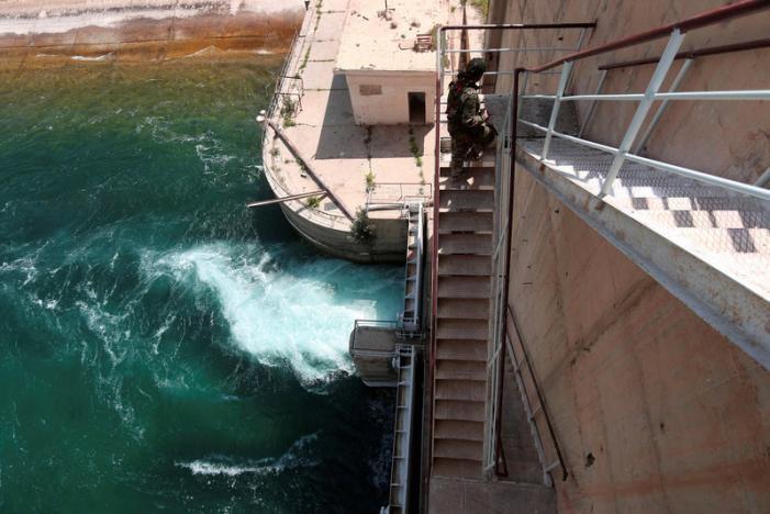 Work on the dam was being carried out after the Syrian government on Sunday said it had been damaged by U.S. air strikes and could collapse, with the risk of catastrophic flooding.