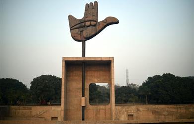 The Open Hand Monument at the Capitol Complex in Chandigarh, the city where French President Francois Hollande begins his India visit on January 24