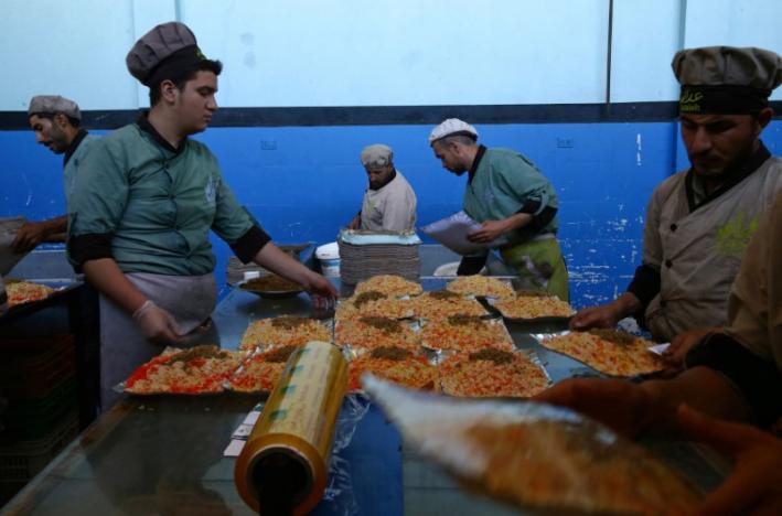 Workers of Adaleh Foundation prepare food at their soup kitchen during the holy month of Ramadan in the rebel-held besieged town of Douma to the east of Damascus, Syria June 20, 2017