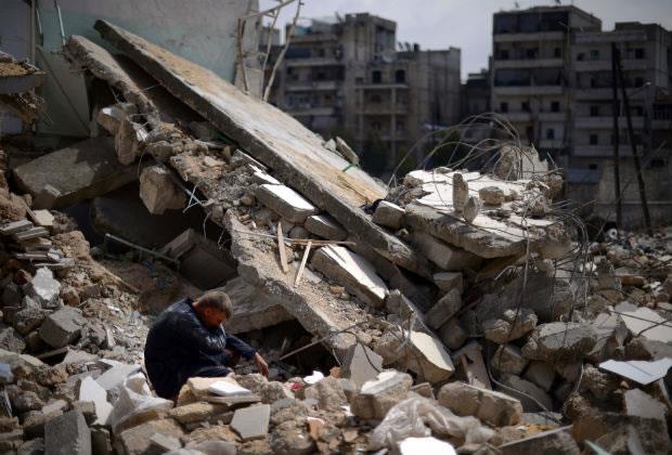 The northern Syrian city of Aleppo, the country’s economic hub, lies in ruins in this April 2015 photograph