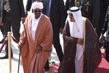Saudi King Salman bin Abdulaziz (R) welcomes Sudanese President Omar al-Bashir