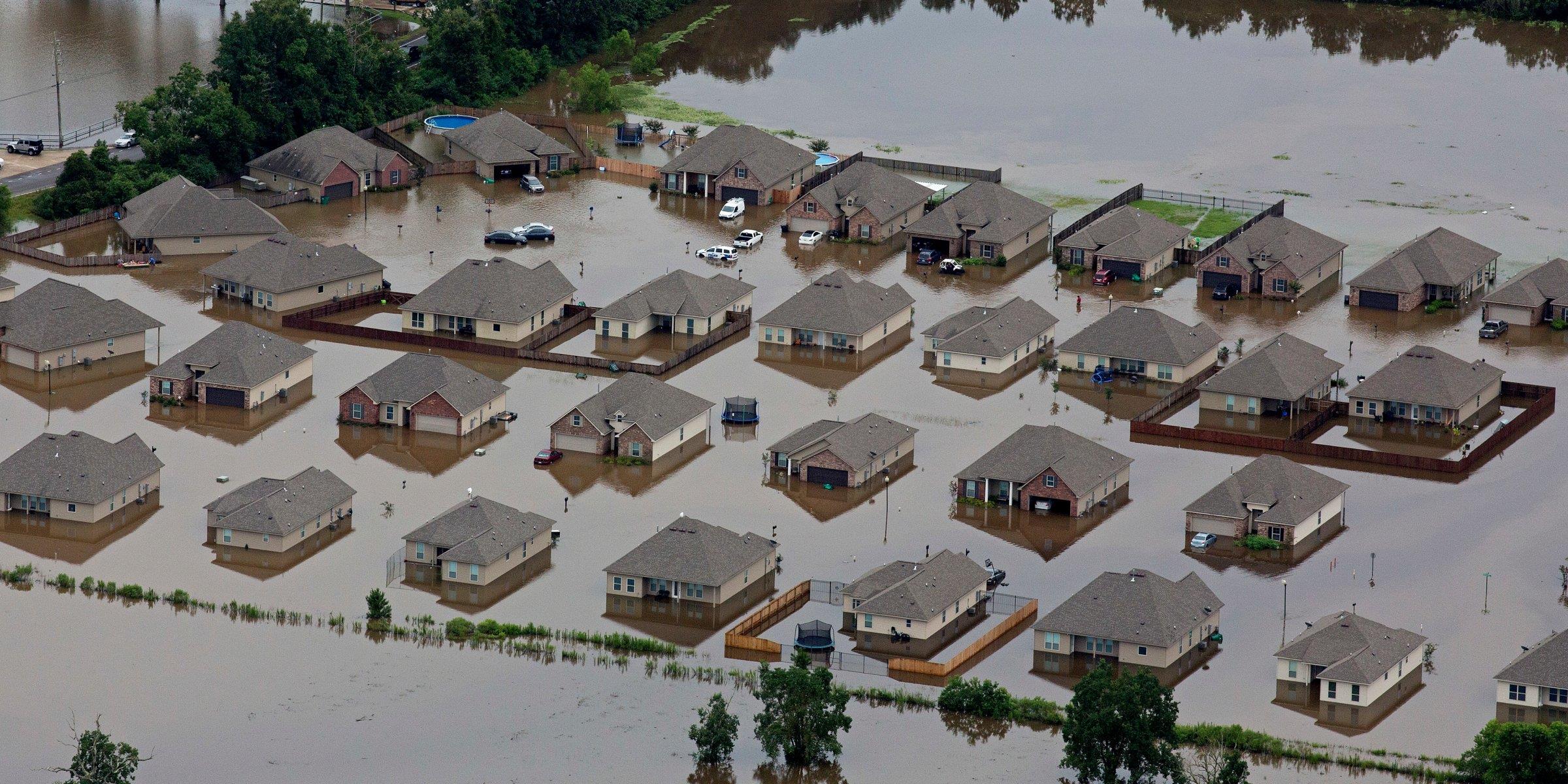 Another neighbor, Brad Jacobs, hopped in a canoe and paddled across the road to his home to grab fresh clothes. Ankle-deep water filled his home; he hopes an insurance payout will help replace the floors.