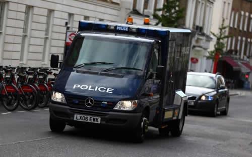 A police convoy arrives at Westminster Magistrates Court where Khalid Mohamed Omar Ali, who was arrested near Parliament
