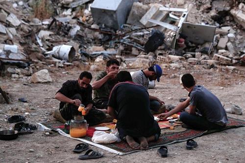 Fighters from the Free Syrian Army prepare to break their fast during the Muslim holy month of Ramadan in the rebel-held neighborhood of Jobar, on the eastern outskirts of Damascus