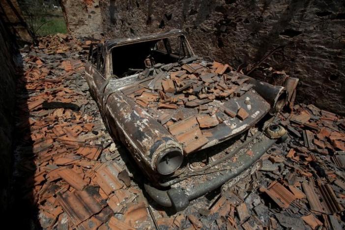 A burned out car is seen during a forest fire in Castanheira de Pera, Portugal, June 20, 2017.