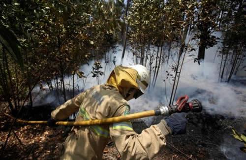A firefighter works to put out a forest fire near Castanheira de Pera, Portugal, June 20, 2017.
