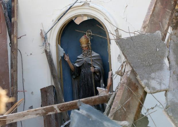 A view of the damage done to the inside of the Church of St. Antony in Visso, which dates back to the 14th century