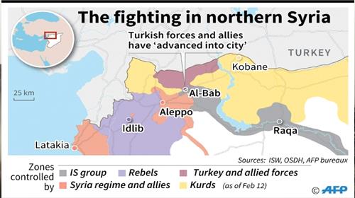 Zones of control in the north of Syria