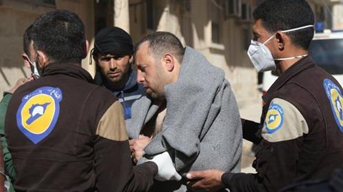 Rescue workers from the Syria Civil Defence, known as the White Helmets, were also overcome