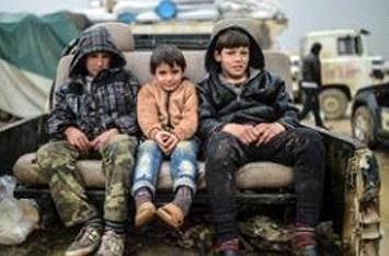 Referee children sit in a pickup on February 6, 2016 in Bab-Al Salam