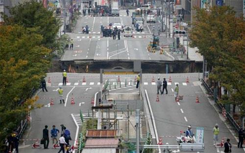 Located at the intersection of a busy road near a train station, the collapse, which occurred just after 5am, caused no casualties but resulted in evacuations, traffic disruption, gas leaks and electricity blackouts, according to Kyodo News.