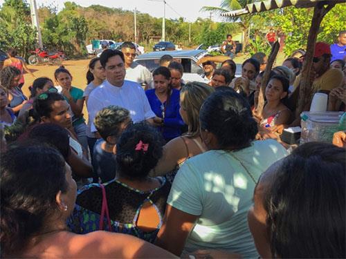 priest talks to inmates’ relatives outside the Alcacuz Penitentiary Center