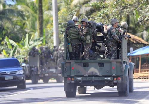 Military vehicles carrying government troops drive along a main highway of Pantar town, Lanao Del Norte, as they travel to reinforce Marawi city, southern Philippines May 24, 2017.
